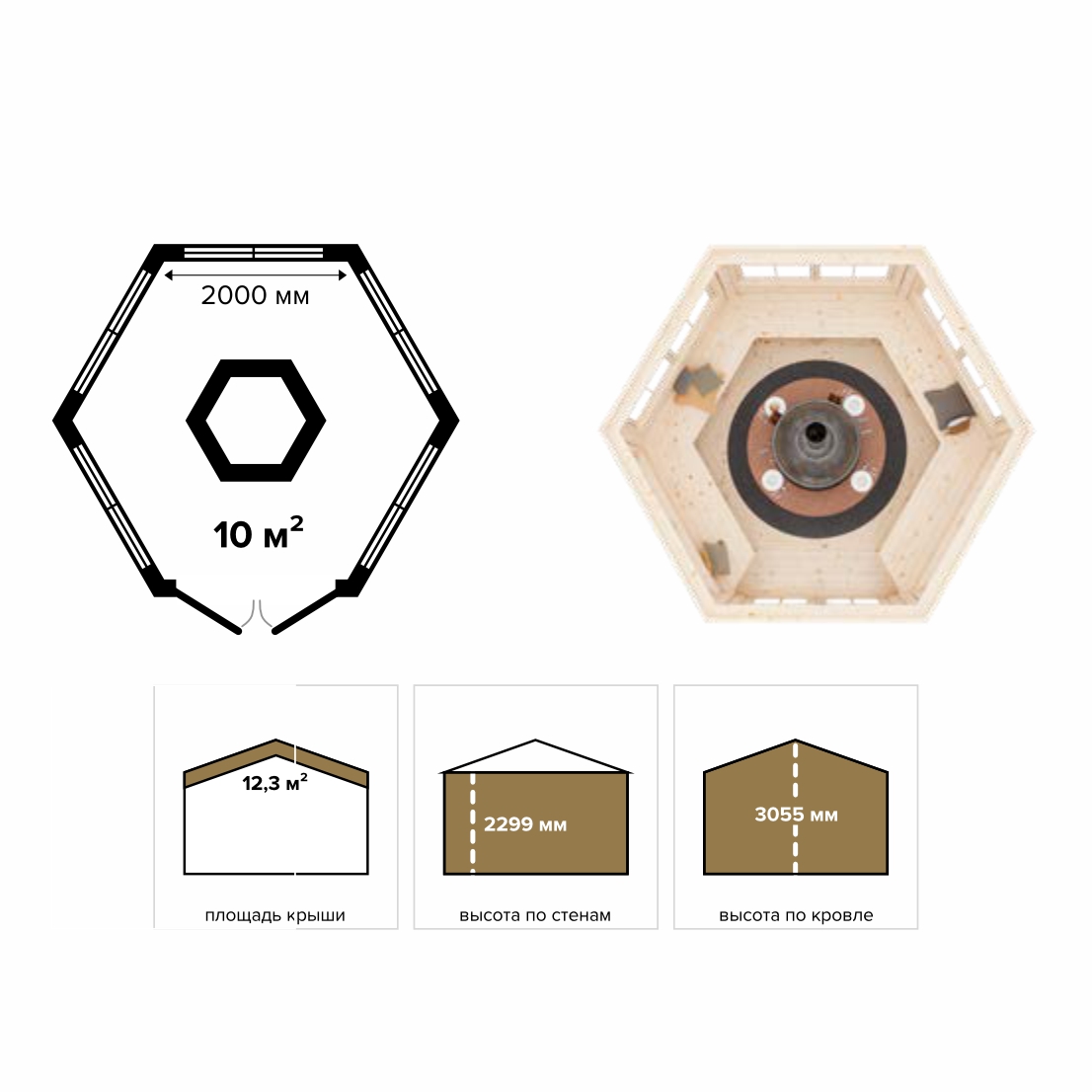 • Беседка 10 шестигранная (Стандарт) – брус 44 мм (фото)