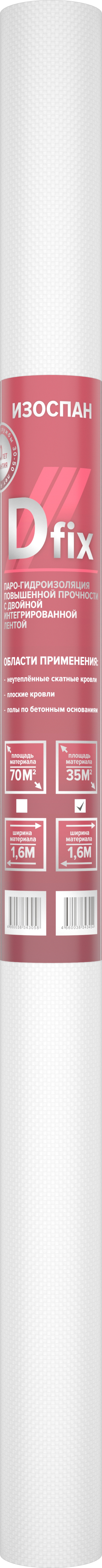 Паро-гидроизоляция Изоспан D fix выполнена из двух слоев: высокопрочного тканого полипропиленового полотна и полипропиленовой пленки. Чтобы материал выполнял качественный гидроизоляционный слой, на материале есть две клейкие ленты, которые скрепляют полотна между собой. Изоспан D fix используют в качестве временного гидроизоляционного покрытия для стен и кровли на протяжении 3-4 месяцев.