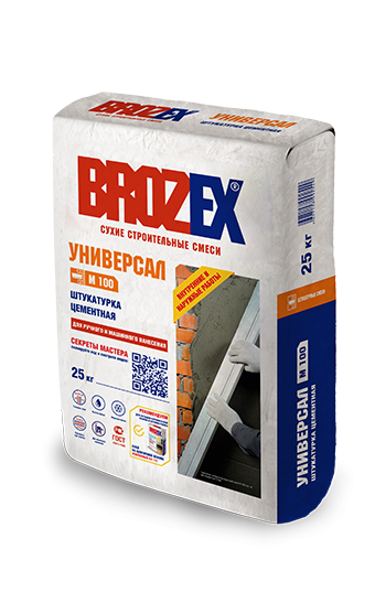 Штукатурная смесь BROZEX М100 Универсал предназначена для внешних и внутренних работ. Выравнивает перепады и дефекты на кирпичных, бетонных и каменных поверхностях. Выполнена на цементной основе.