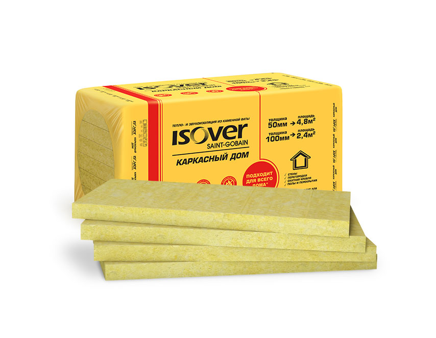 Утеплитель в плитах Изовер Каркасный Дом, 100мм, 2,4 м2, 600х1000мм