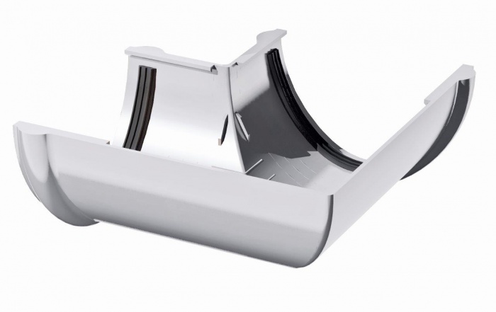 Угол желоба 90° используется для изменения направления потока воды, монтируется на внешних и внутренних углах кровли.